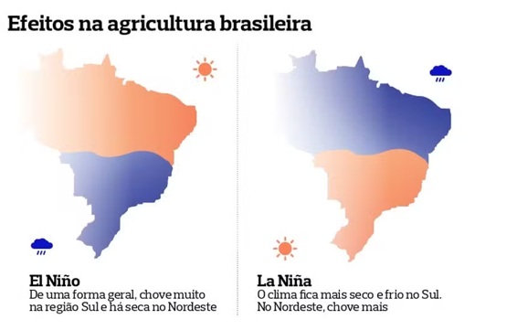 O fenômeno, porém, também traz riscos. A La Niña costuma produzir precipitações acima da média no Norte, no litoral do Nordeste e em áreas de grãos na Bahia, Maranhão e Piauí. Entre os principais impactos estão alagamentos, encharcamento do solo, compactação em áreas com operações mantidas mesmo sob umidade, aumento de patógenos favorecidos pelo calor, janelas de plantio mais curtas e perda de qualidade caso o pico de chuva avance até março.