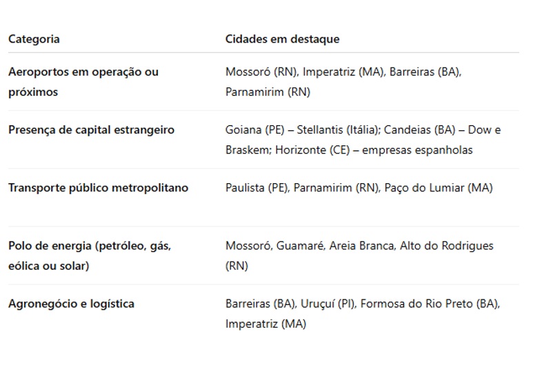 De Candeias (BA) a Barreiras (BA), passando por Goiana (PE), Mossoró (RN) e Imperatriz (MA), esses municípios exibem trajetórias diversas, mas convergem em um ponto: crescimento sustentável requer planejamento, inovação e infraestrutura integrada.