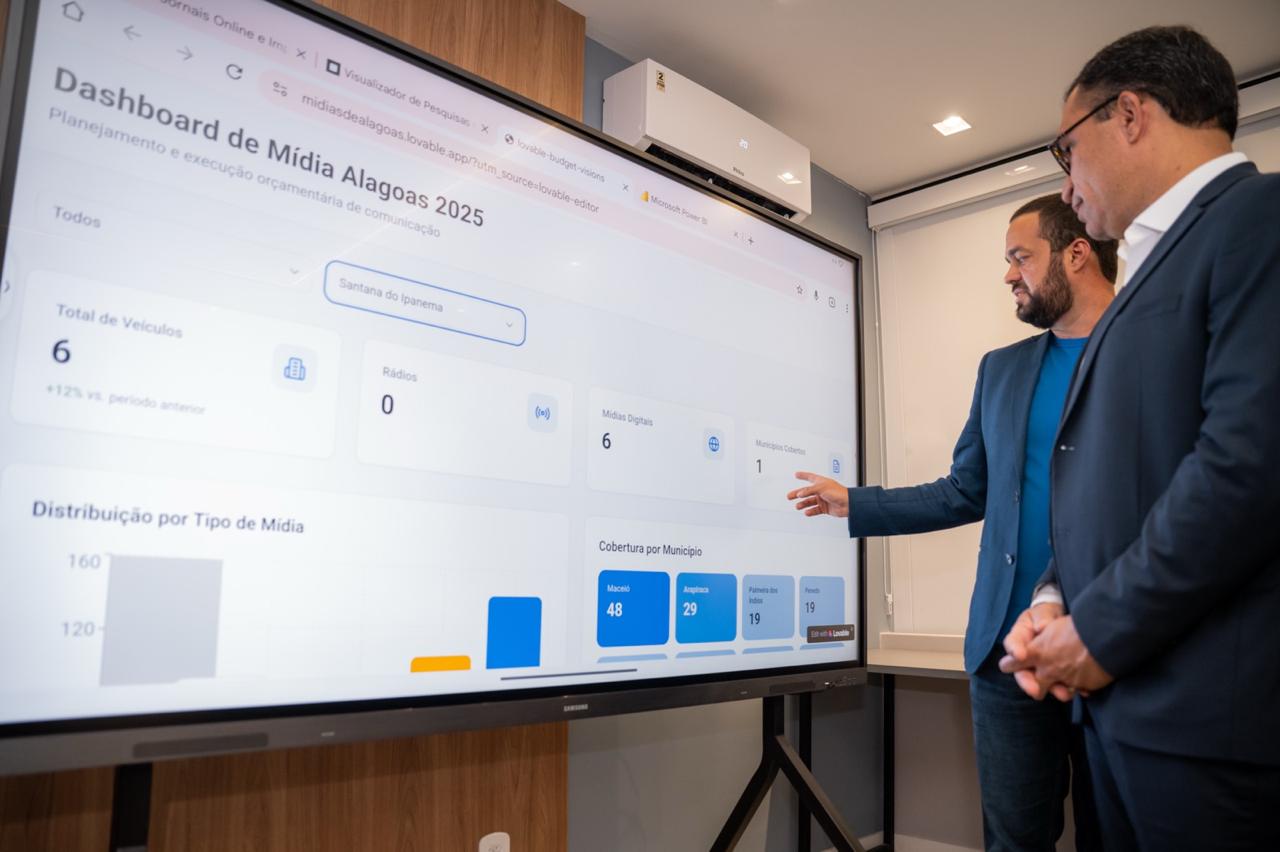 Além disso, a Secom também apresentou um Dashboard de Mídia de Alagoas que mostra os Planos Estratégicos Setoriais 2025/2026, o Planejamento e Execução Orçamentária da Comunicação e um Visualizador de Pesquisa de Opinião Pública, tudo disponível de forma inteligente, transparente e organizada. É tanta tecnologia que a Secom agora tem até uma inteligência Artificial: Diana.