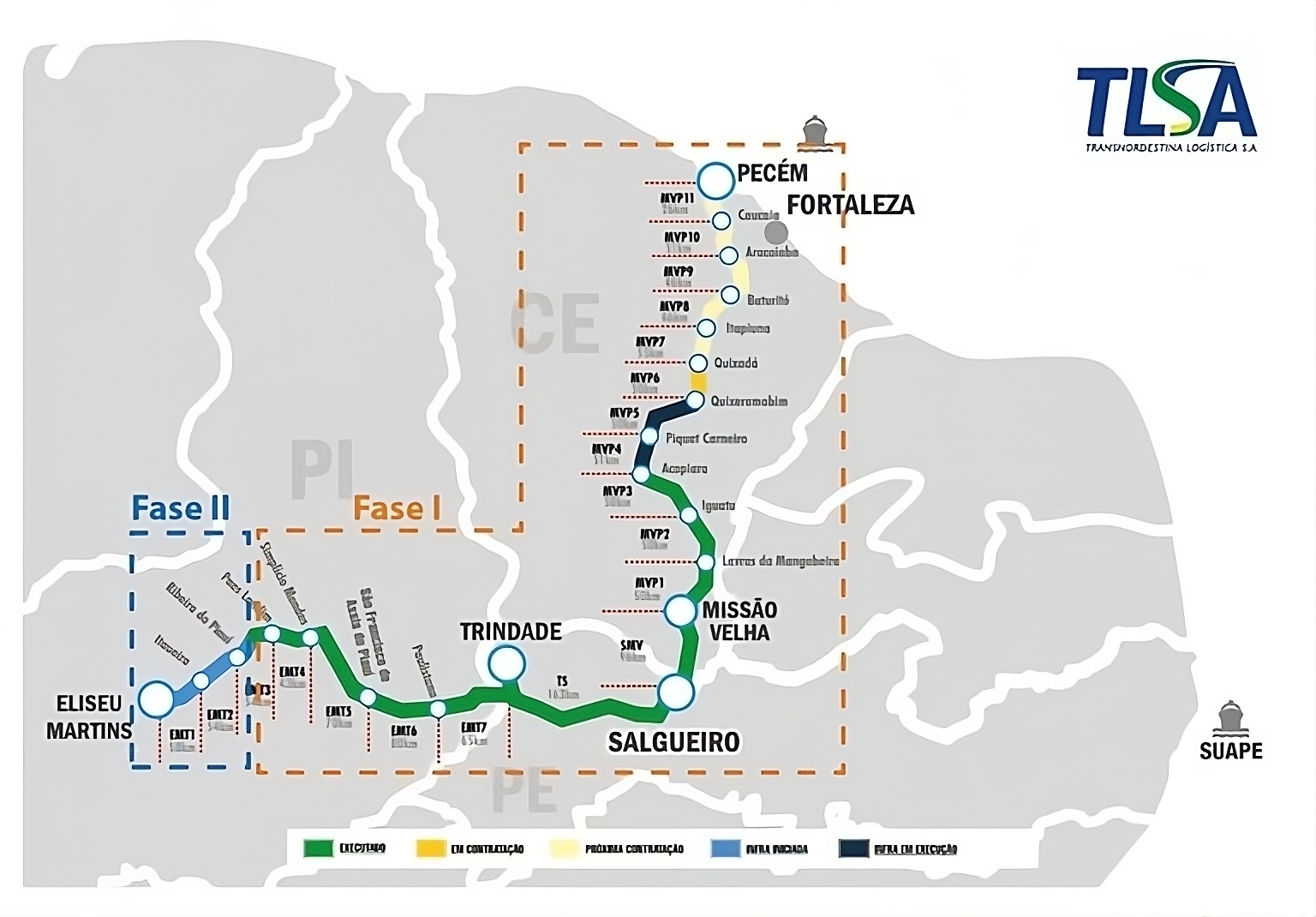 Parte do Novo PAC, a ferrovia tem ao todo 1.206 km de extensão em linha principal, atravessando 53 municípios em três estados (Piauí, Ceará e Pernambuco), ligando Eliseu Martins (PI) ao Porto do Pecém (CE), na Região Metropolitana de Fortaleza, passando por Salgueiro (PE). O objetivo é transformar o Nordeste em polo exportador de minério de ferro e conectar, por trilhos, o sertão e o mar. A fase 1 do empreendimento já alcançou 70% de execução.