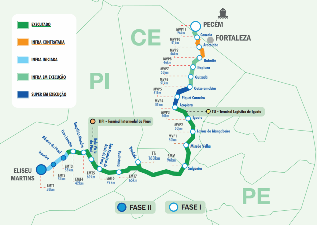 A Transnordestina Logística S.A. (TLSA), concessionária responsável pela construção e futura operação comercial da ferrovia, informa que o início da operação comissionada — etapa anterior ao funcionamento pleno — será definido em conjunto com o Governo Federal e os governos do Ceará e do Piauí. Quando estiver totalmente em operação, a ferrovia será destinada ao transporte de cargas de alto desempenho, como grãos, algodão, minérios, gesso, gipsita e contêineres, ampliando significativamente a competitividade da produção nordestina.